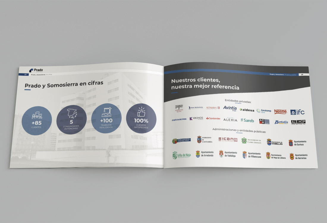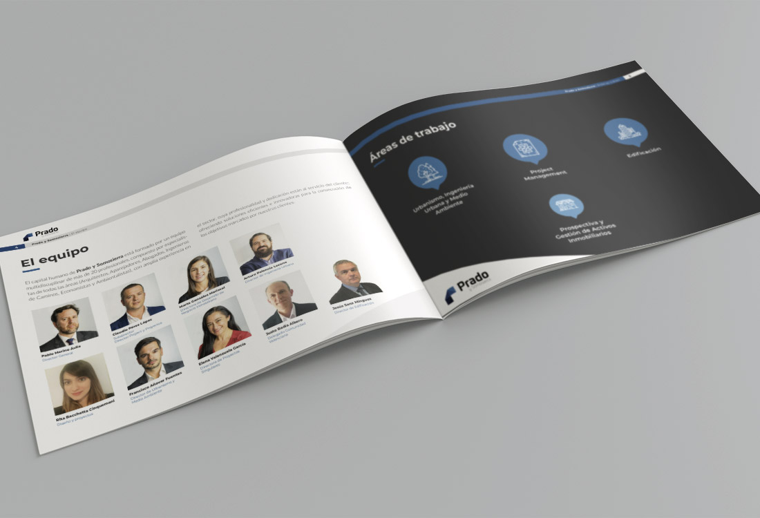 Prado y Somosierra es una empresa que ofrece soluciones técnicas y jurídicas para proyectos urbanísticos e inmobiliarios. Me encargaron el diseño de su dossier corporativo, que les sirve como presentación de la empresa, de sus servicios y de los proyectos realizados.