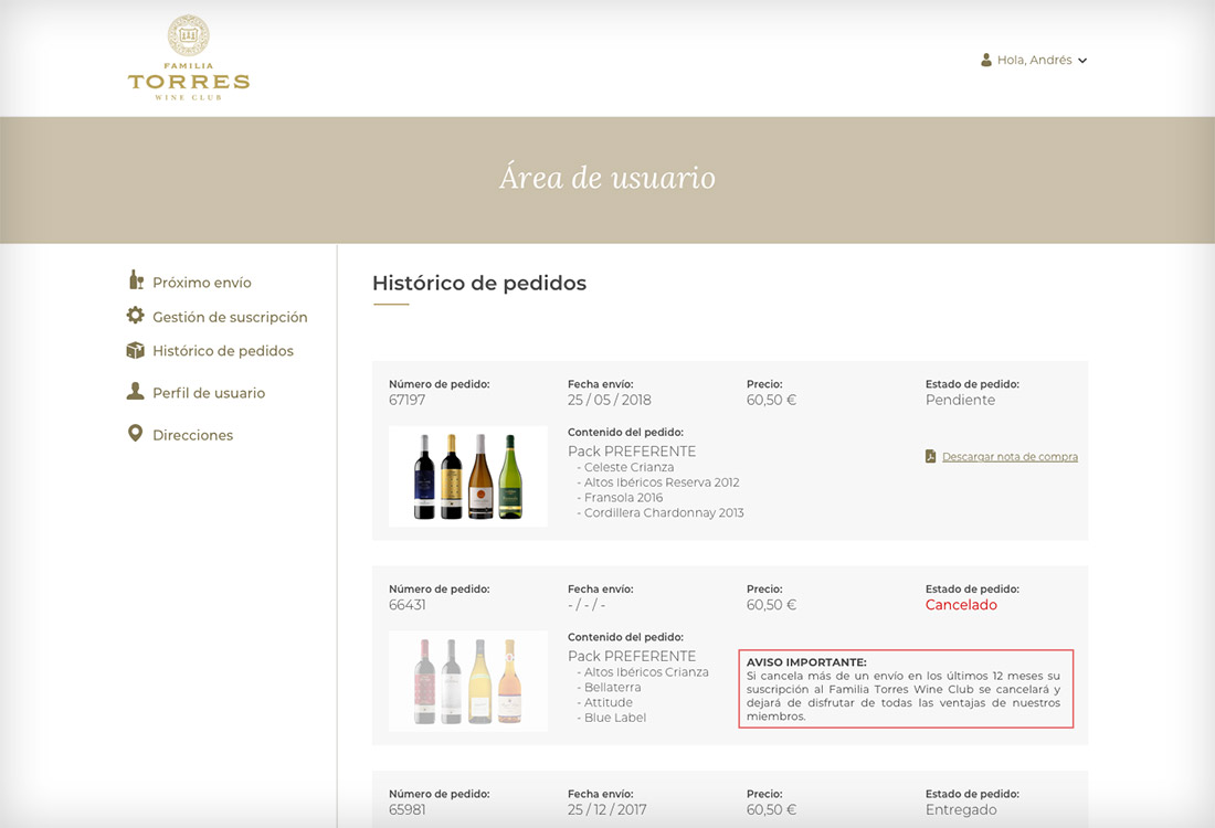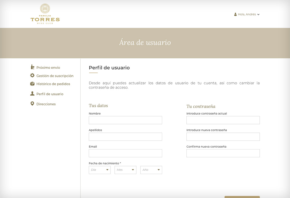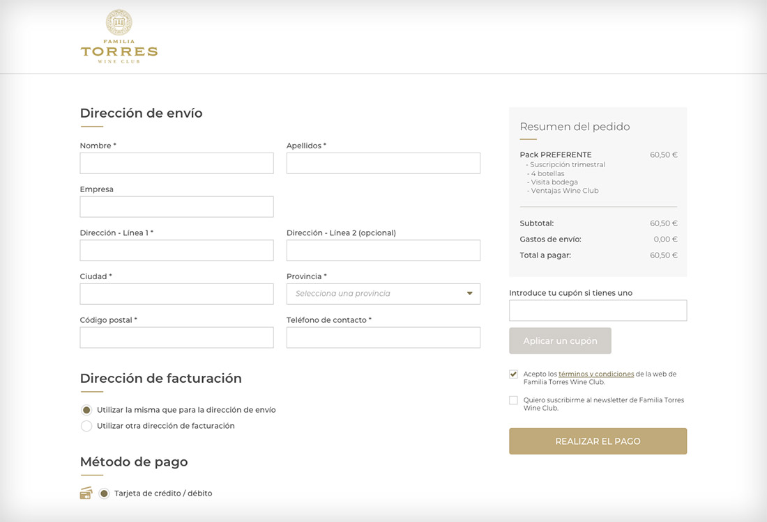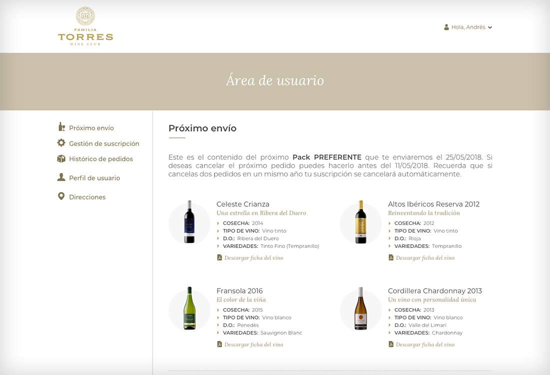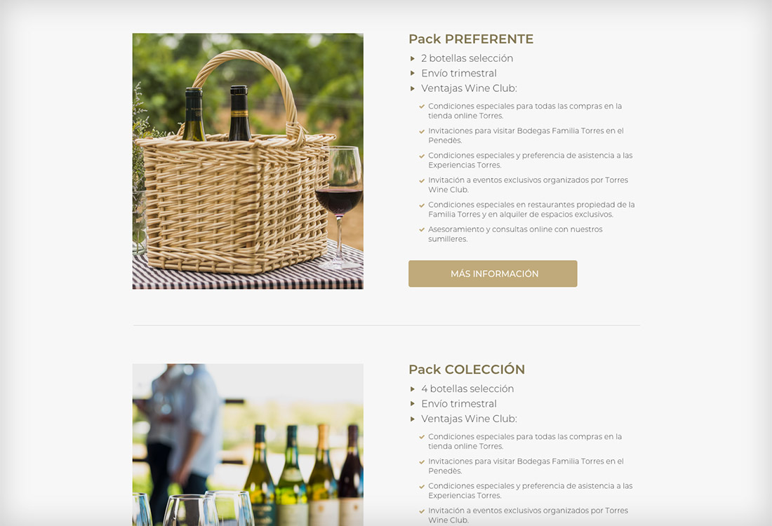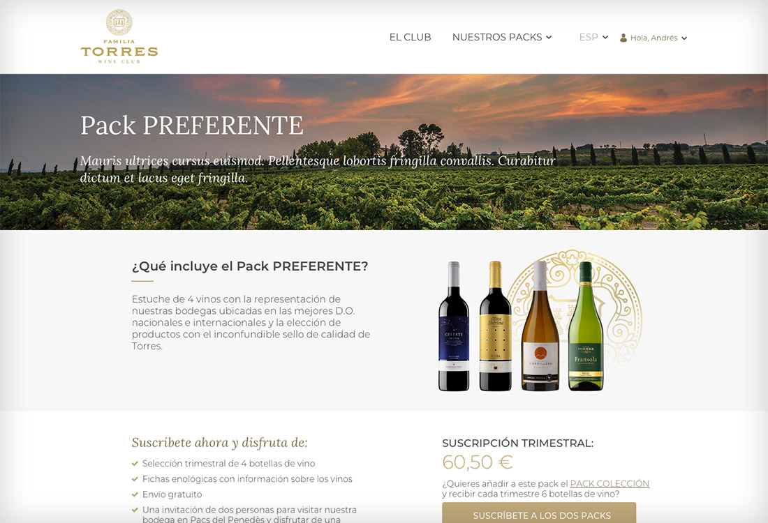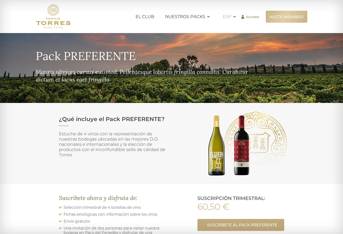 Club Torres es una web de Bodegas Torres a través de la cual sus clientes más fieles pueden suscribirse a uno de sus packs y recibir trimestralmente una selección de vinos de la bodega. Realicé la consultoría de usabilidad y experiencia de usuario así como el diseño de la web y el ecommerce.
