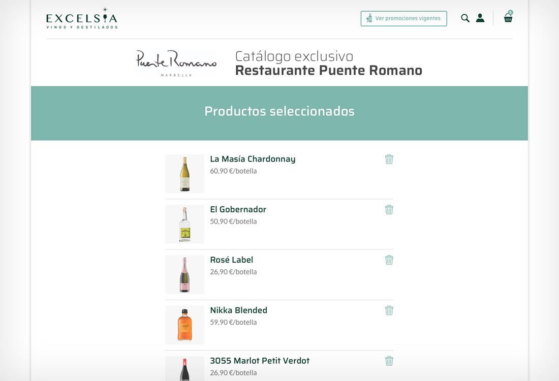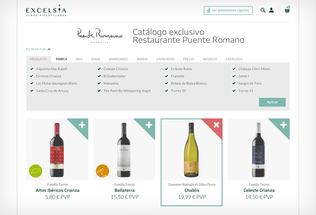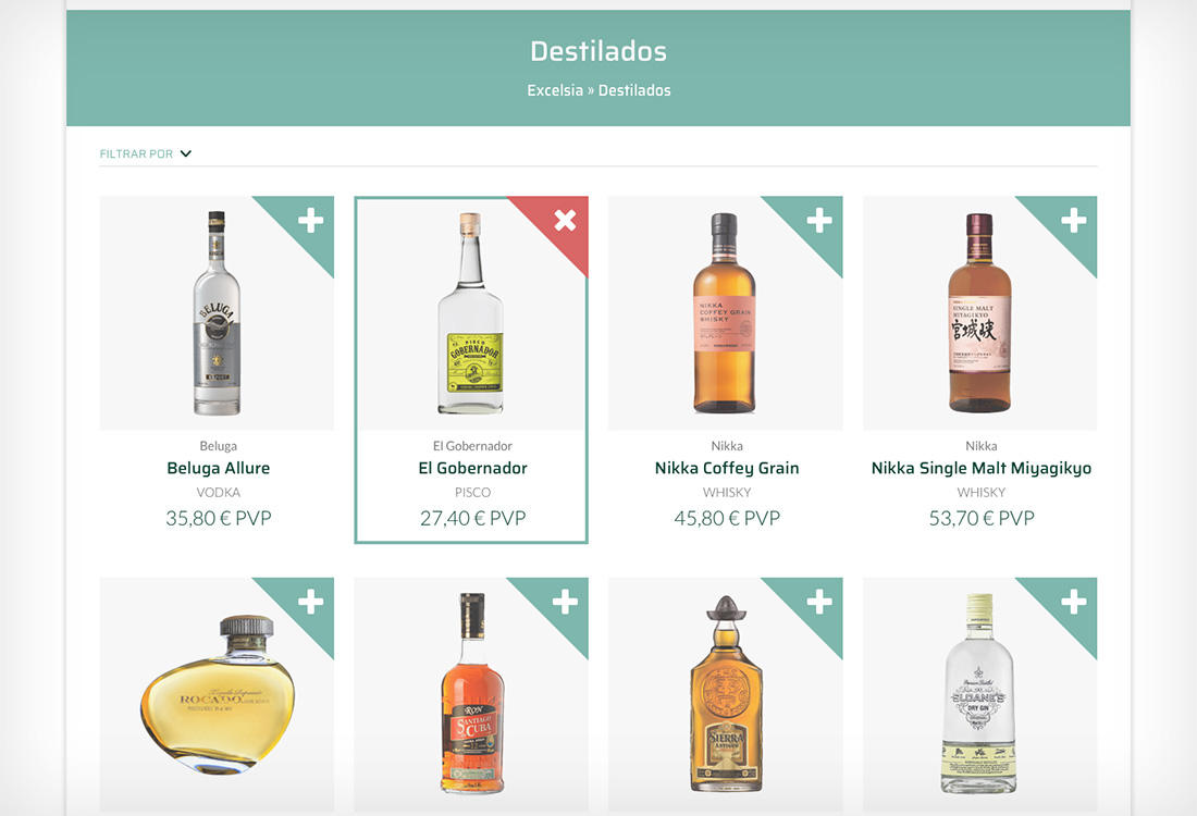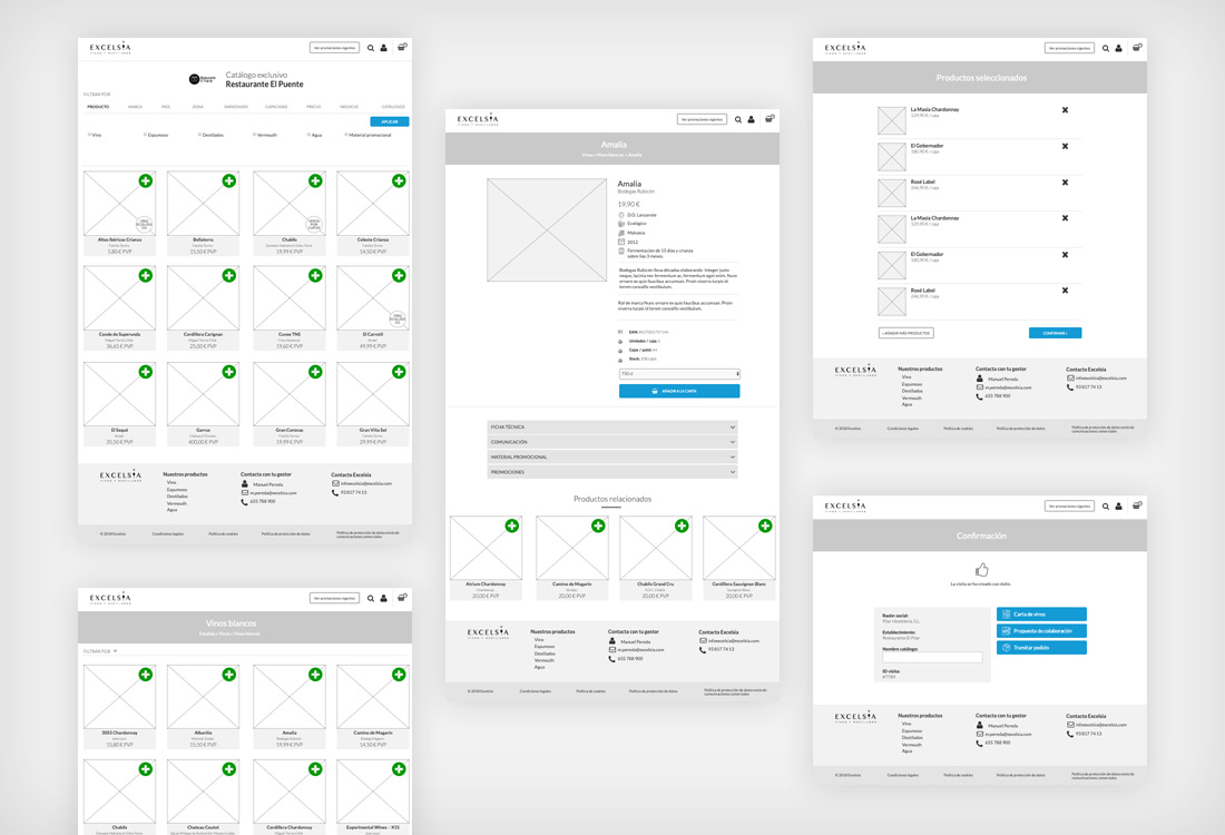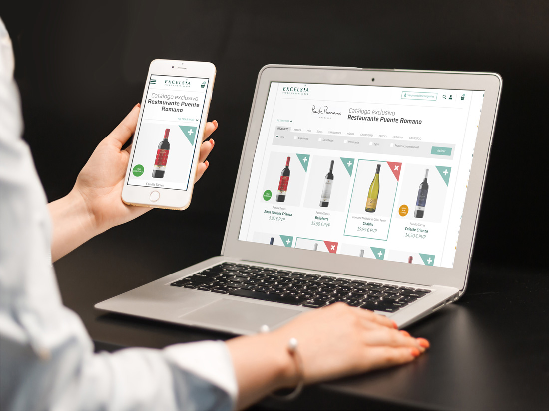 Excelsia es la distribuidora de bebidas de Bodegas Torres. Necesitaban una aplicación web a través de la cual sus comerciales pudieran crear catálogos de bebidas personalizados para cada cliente. Llevé a cabo tanto la consultoría de usabilidad y experiencia de usuario como el diseño de la web y tienda online.
