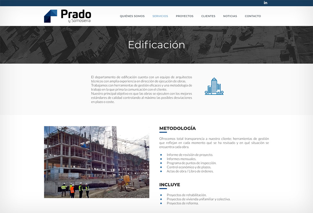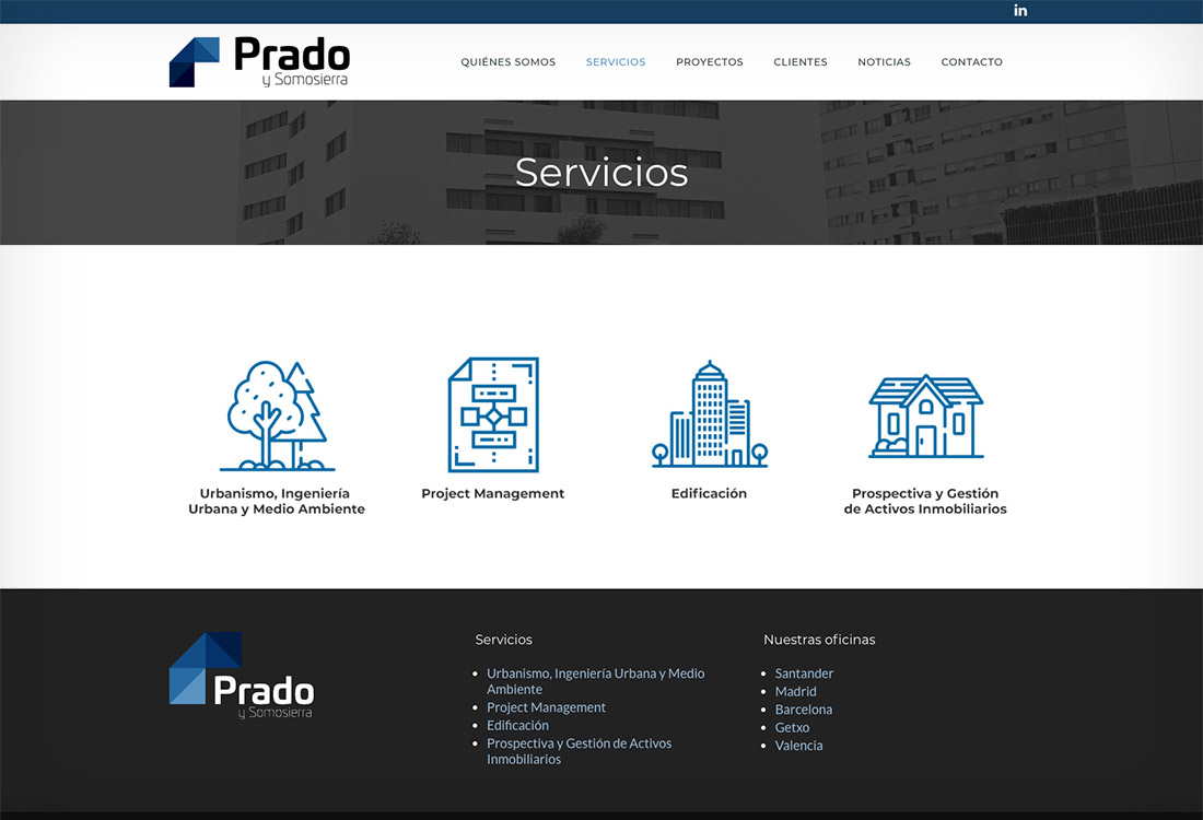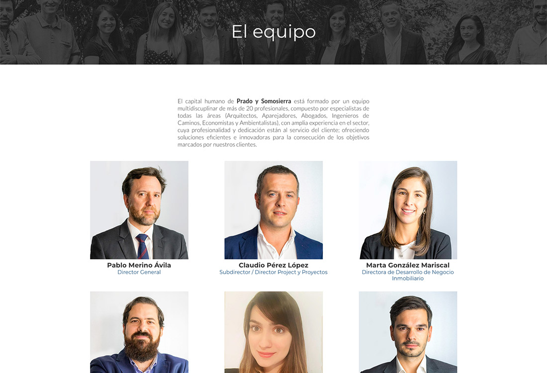 Prado y Somosierra es una empresa que ofrece soluciones técnicas y jurídicas para proyectos urbanísticos e inmobiliarios. Diseñé y desarrollé su nueva web en la que presentan sus servicios, a su equipo profesional y detallan los proyectos que han desarrollado.